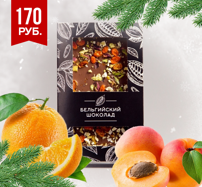 Молочный шоколад с апельсином, облепихой и фисташками