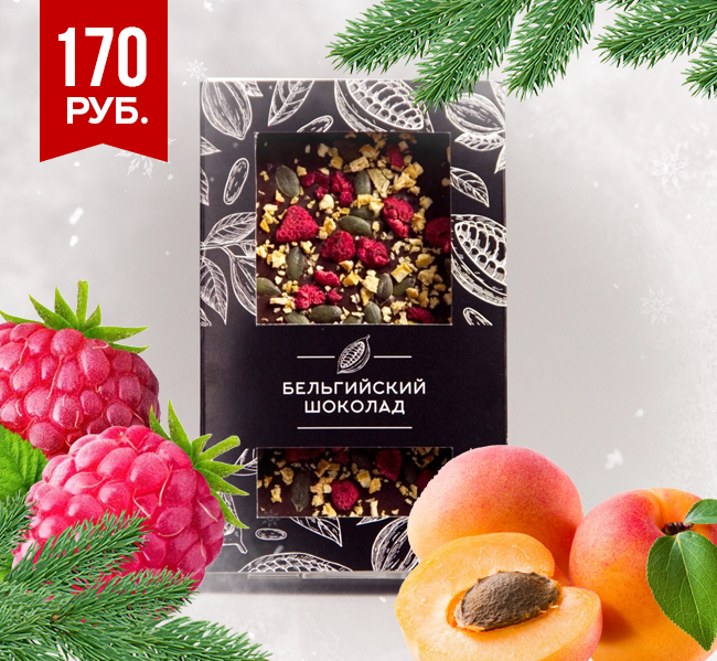 Тёмный шоколад с малиной, абрикосом и семечками тыквы