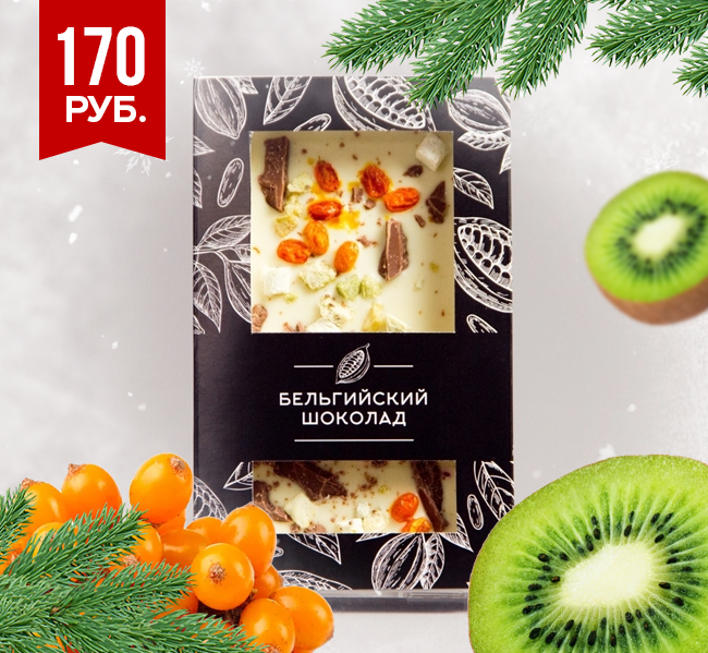 Белый шоколад с облепихой, киви и кусочками молочного шоколада