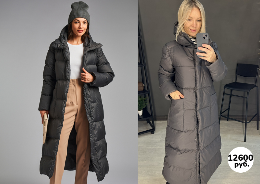 Ну какой красивый цвет! Гладкая, приятнейшая на ощупь ткань. С контрастными пуговицами. Я такое пальто ношу до градусов -15. На морозы подойдет только, если вы на машине. Себе на свой 44 я взяла тоже 44. Потому что мне нравится такой объем. В принципе, можно брать и на размер меньше. Смотрится пуховик очень дорого!