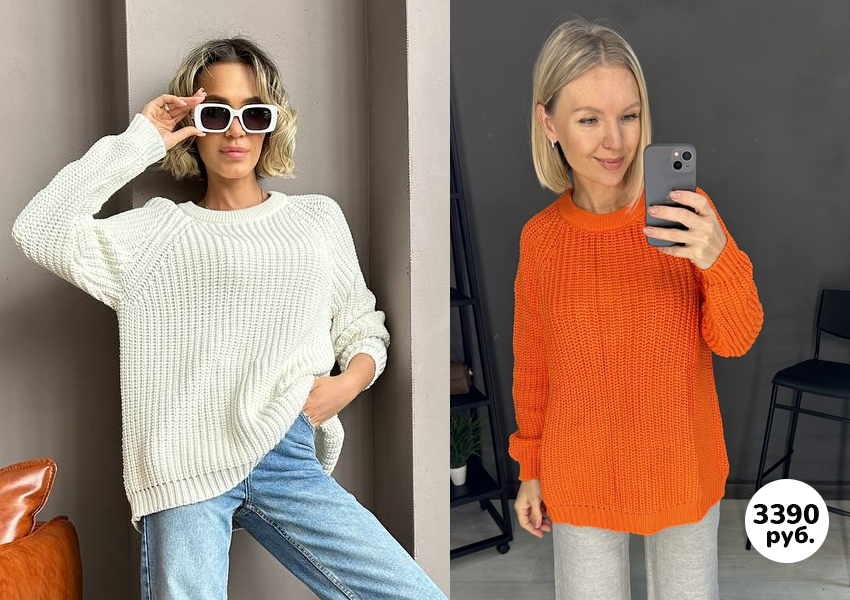 Очень мягкий и приятный к телу и совершенно не колется. Оверсайз. Не полнит)). Подойдет и на 42, и на 44 и на 46 тоже.