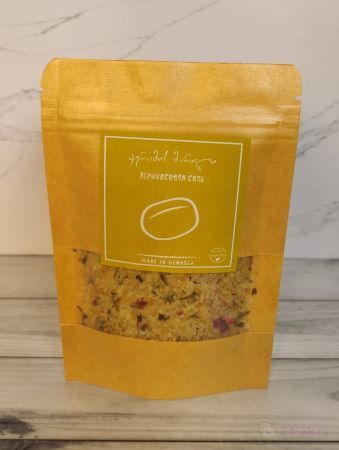 Абрикосовая соль на белом вине с травами (йодированная) – соль, выпаренная в белом вине с абрикосовым ароматом и добавлением самых ароматных трав, таких как тимьян, кондари, орегано и розовый перец. Идеально к мясу и овощам.