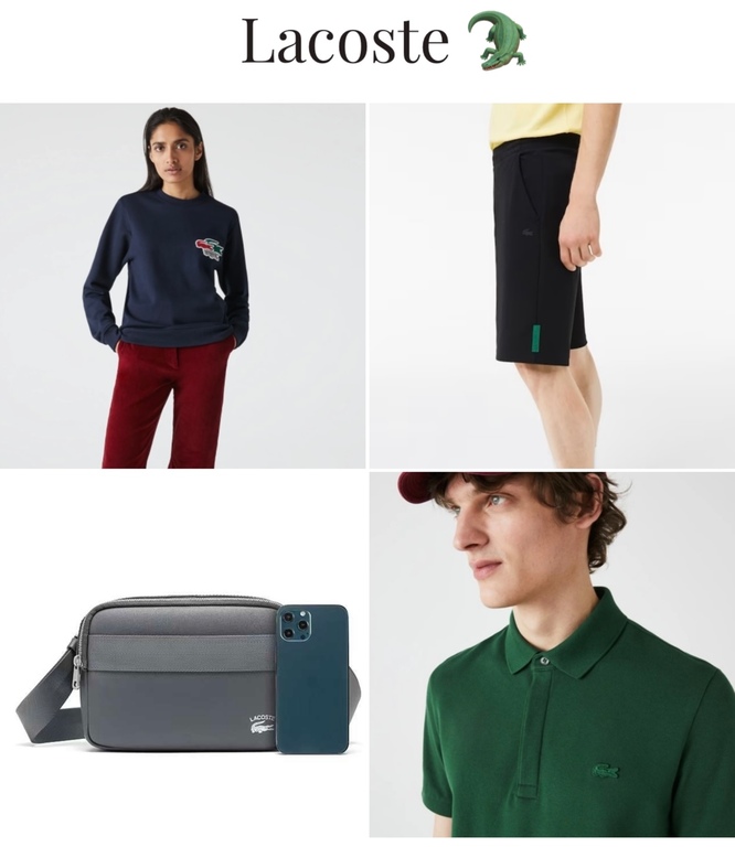 ▪️Следующий не менее прекрасный бренд Lacoste🐊, известен своей спортивной и элегантной эстетикой. В коллекции одежды Lacoste представлены рубашки-поло, теннисные платья и повседневная классика, которая создает удобный, но стильный образ.