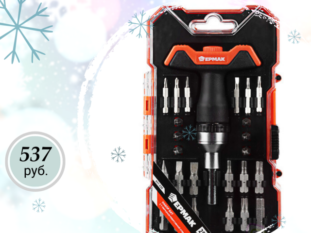 ЕРМАК Набор бит с Т-образной реверсивной отверткой, 25 предметов