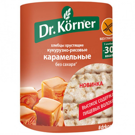 Продукт БЕЗ ГЛЮТЕНА! Любимый с детства вкус карамели теперь можно попробовать и в формате хлебцев, а в сочетании с нежной кукурузно-рисовой основой это напоминает карамельный попкорн из кинотеатра. Полезная альтернатива печенью, не содержат муки, искусственных красителей и ароматизаторов.