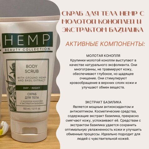 ✅Молотая конопля стимулирует кровоток в верхних слоях кожи, бережно отшелушивает и очищает.
