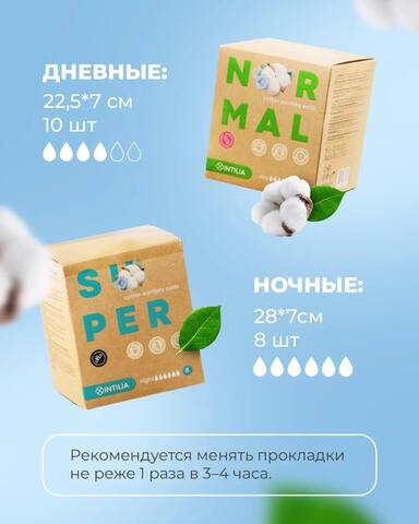 #03706 Женские хлопковые прокладки INTILIA с хитиновой вставкой, дневные