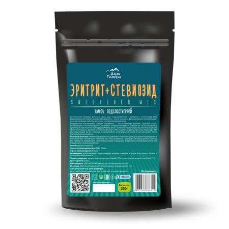 Кристаллический порошок белого цвета с приятным и нежным вкусом, лёгким холодящим эффектом. Сладость эритрита составляет примерно 70% сладости сахарозы, при этом стеивозид в 300 раз слаще сахара.