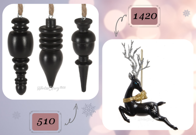 Весь чёрный декор для ёлки
