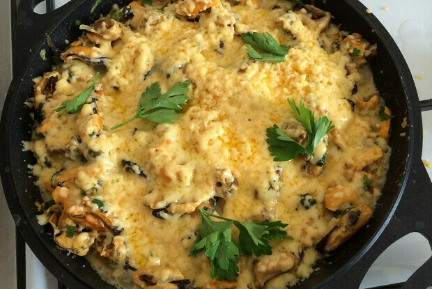 Нужно написать ваш любимый рецепт из мидий под лотом.