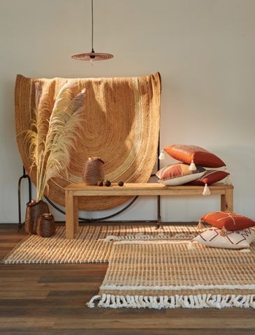 джут - делает ковер практичным и долговечным, обеспечивая стойкость к износу и сохраняя его форму на протяжении долгого времени,