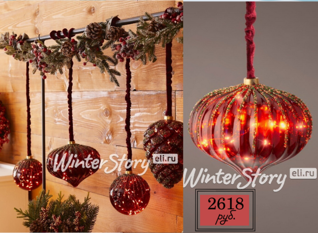 Подвесной светильник Луковка Жаклин 80*20 см, 15 микро LED ламп, на батарейках, стекло (Kaemingk)