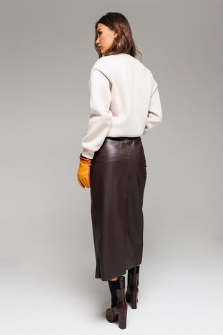 Юбка из эко-кожи, прямого силуэта, миди. В красивом шоколадном цвете