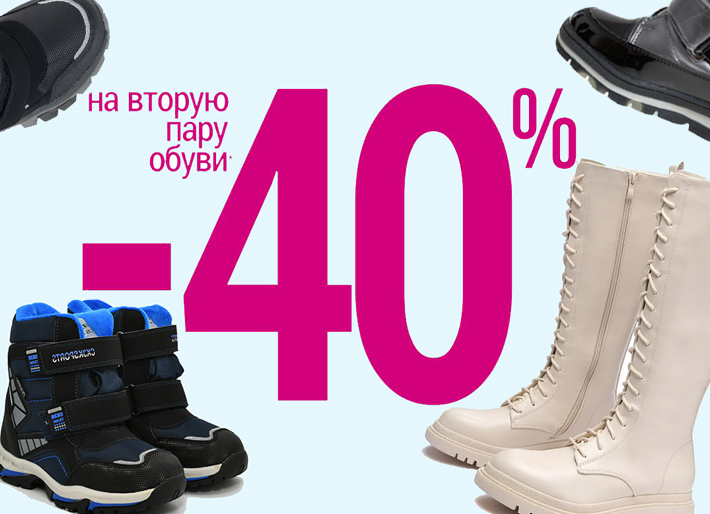 Специальная АКЦИЯ! Только до конца недели - скидка -40% на ВТОРУЮ пару обуви (по наименьшей цене)!