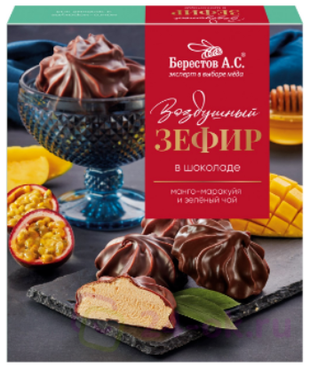 Нежнейший воздушный зефир с ароматом манго в тончайшем слое настоящего шоколада неизбежно станет Вашим любимым лакомством.