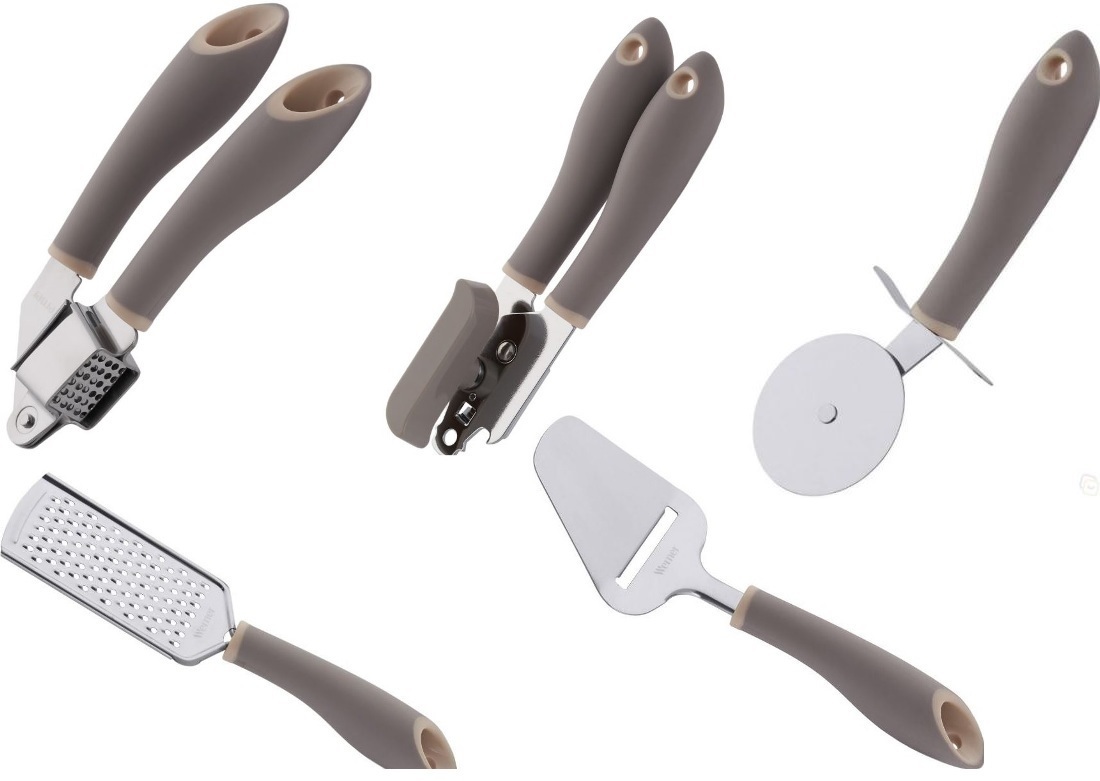 Серия Gusto - это полезные гаджеты для кухни: нож и лопатка для пиццы, пресс для чеснока, слайсер для сыра, консервный нож, тёрка с ручкой