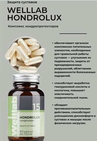 Заболевания опорно-двигательной системы получают все большее распространение. Сегодня каждый седьмой житель планеты трудоспособного возраста страдает той или иной патологией костно-мышечной системы.WELLLAB HONDROLUX ACTIVE обеспечивает организм комплексом питательных элементов, необходимых для правильной работы суставов — улучшения их подвижности, защиты от преждевременных разрушений, облегчению выраженности болезненных ощущений⠀⠀ ⠀ ⠀⠀⠀⠀ ⠀ ⠀