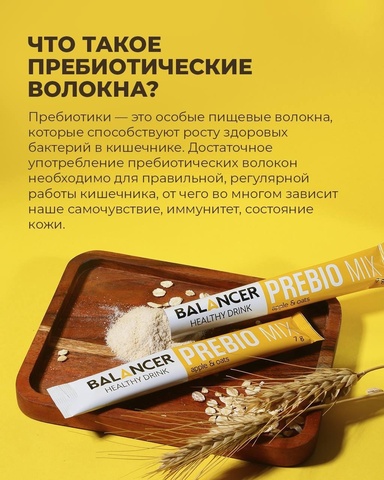 Пребиотический напиток BALANCER PREBIO MIX содержит необходимые для правильной работы кишечника пищевые волокна, которые содействуют росту его микрофлоры, помогают наладить регулярный стул.