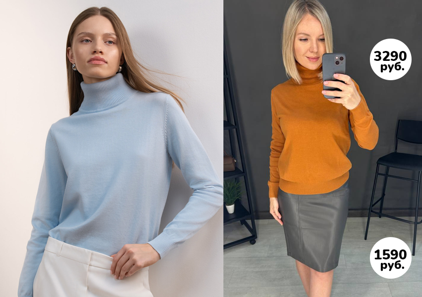 Следующий образ. Горячо любимые всеми водолазки, которые хорошо тянутся и очень приятные к телу.