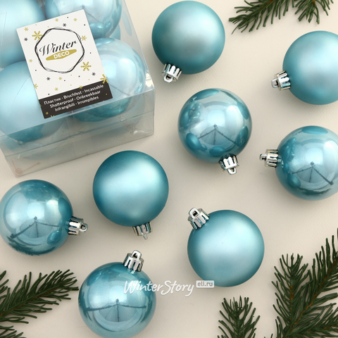 Набор пластиковых шаров Голубая Карамель 6 см, 12 шт, mix (Winter Deco). 289 руб., 24 руб. за один шар!