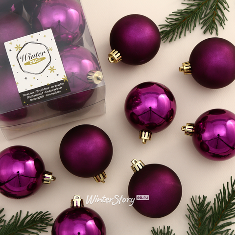 Набор пластиковых шаров Аметистовый 6 см, 12 шт, mix (Winter Deco). 289 руб.