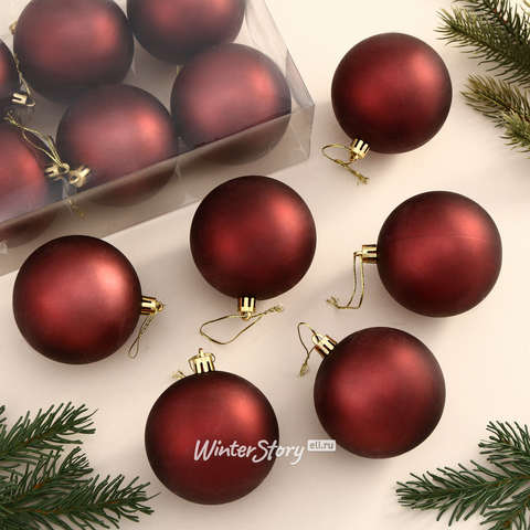 Набор пластиковых шаров Liberty 8 см, 6 шт, бургунди матовый (Winter Deco)