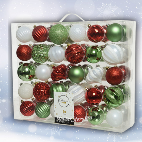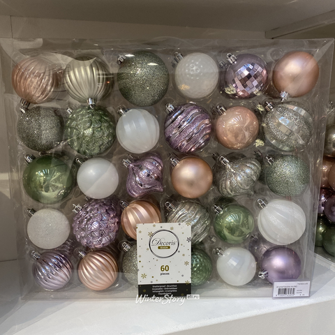 Набор пластиковых шаров Эльфийские Трели, 6-7 см, 60 шт . Один такой набор подойдет чтобы полностью украсить ёлку до 1.5-1.8 м.