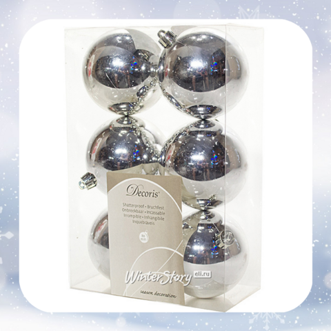 Набор пластиковых глянцевых шаров 8 см серебро, 6 шт, 2 сорт (Kaemingk)