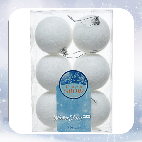 Набор елочных шаров Снежки 6 см, 6 шт (Kaemingk)