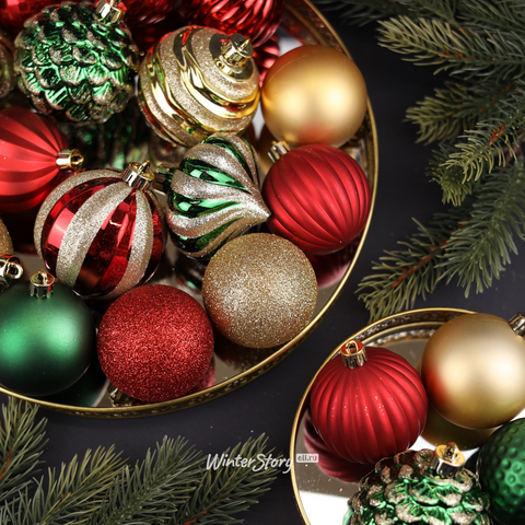 Ещё яркий акцент с набором елочных игрушек Glory Brilliance 50 шт красный, 5-16 см, пластик.2117 руб, за одну игрушку всего около 43 руб.!