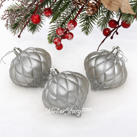 Набор елочных шаров Юла 8 см, 3 шт, серебряный (Serpantin)