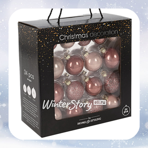 Набор стеклянных шаров Campobello Favore - Pink 4-6 см, 34 шт (Koopman). 1828 руб., за один шар всего 54 руб.!