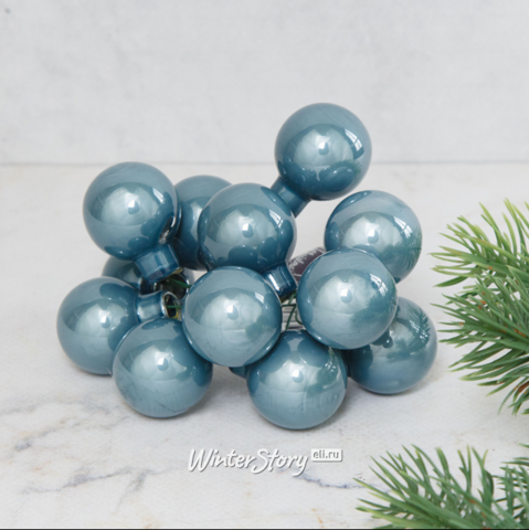 Гроздь стеклянных шаров на проволоке 2.5 см голубой туман эмаль, 12 шт (Kaemingk)