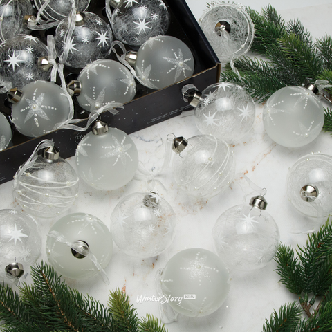 Набор стеклянных шаров Снежная Королева 8 см, 12 шт (Kaemingk)