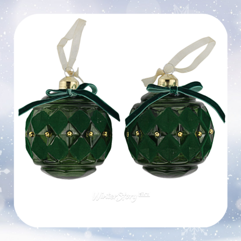 Набор стеклянных елочных шаров Velvet Vintage 8 см зеленый, 2 шт (Kaemingk)