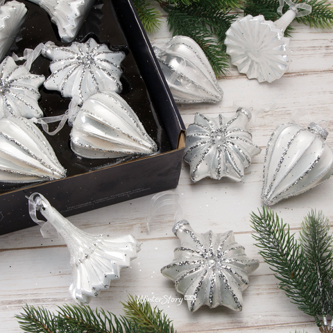 Набор елочных игрушек для маленькой елки Классика серебряный, 15 шт, стекло 612 руб.