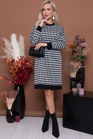 Платье свободного силуэта из жаккардового трикотажного полотна.