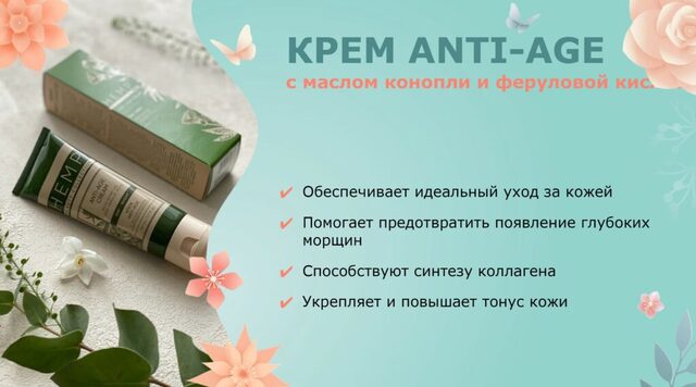 Крем для интенсивной регенерации клеток кожи с маслом конопли и феруловой кислотой способствует разглаживанию морщин, повышению тонуса и эластичности кожи. Средство помогает предотвратить преждевременное увядание кожи и стимулирует клеточный обмен для выработки коллагена. Питает, освежает и придает коже сияние. Сохраните молодость кожи надолго!