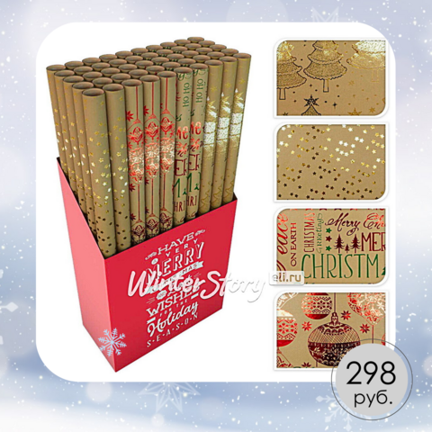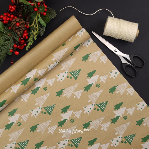 Крафт бумага для подарков Christmas Charm: Елочки 200*70 см (Kaemingk). 162 руб.