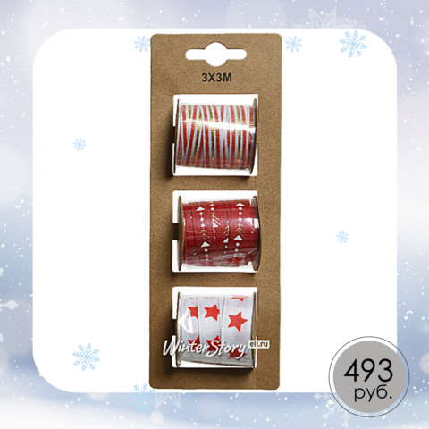 Набор лент Рождество в Праге 3 м, 3 шт (Kaemingk)