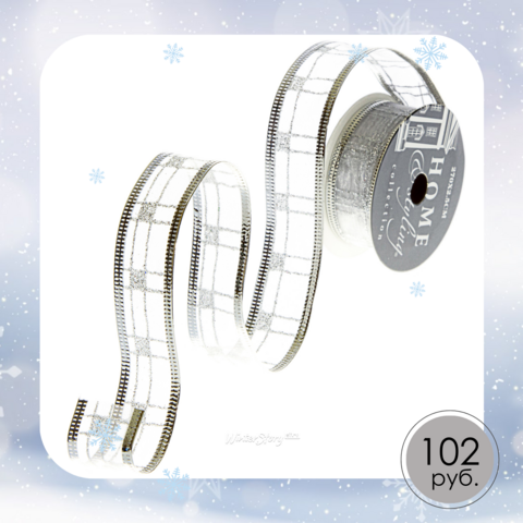 Декоративная лента Клеточка белая 270*2.5 см органза (Koopman)