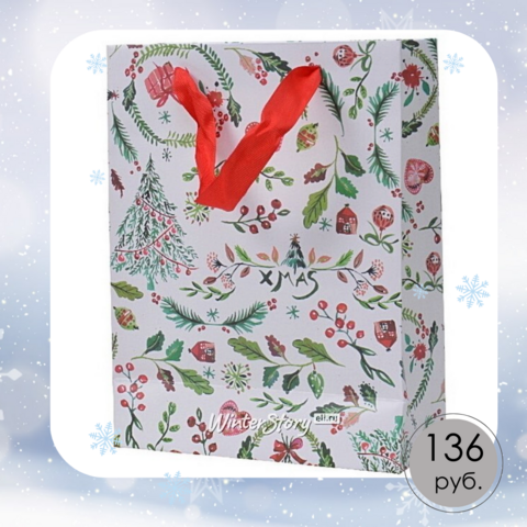Подарочный пакет Xmas Style 24*18 см белый (Kaemingk)