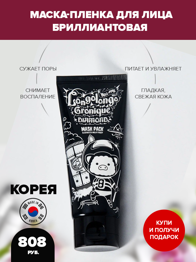Пленочная маска с алмазным порошком способствует сужению пор, очищает их, питает кожу и увлажняет ее. Алмазный порошок и другие ингредиенты в составе маски делают кожу более гладкой, свежей, выравнивают тон сразу после применения.