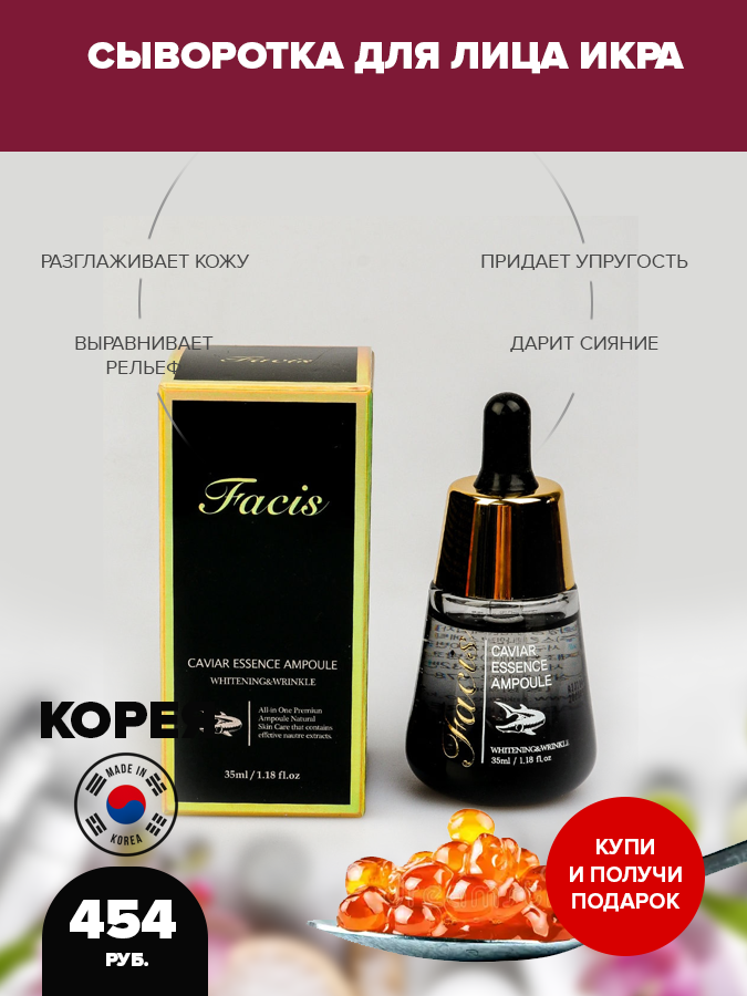Экстракт икры (50ppm) в составе богат аминокислотами, которые предотвращают потерю влаги и являются натуральными увлажнителями кожи. Ниацинамид и аденозин дарят сияние и разглаживают кожу.