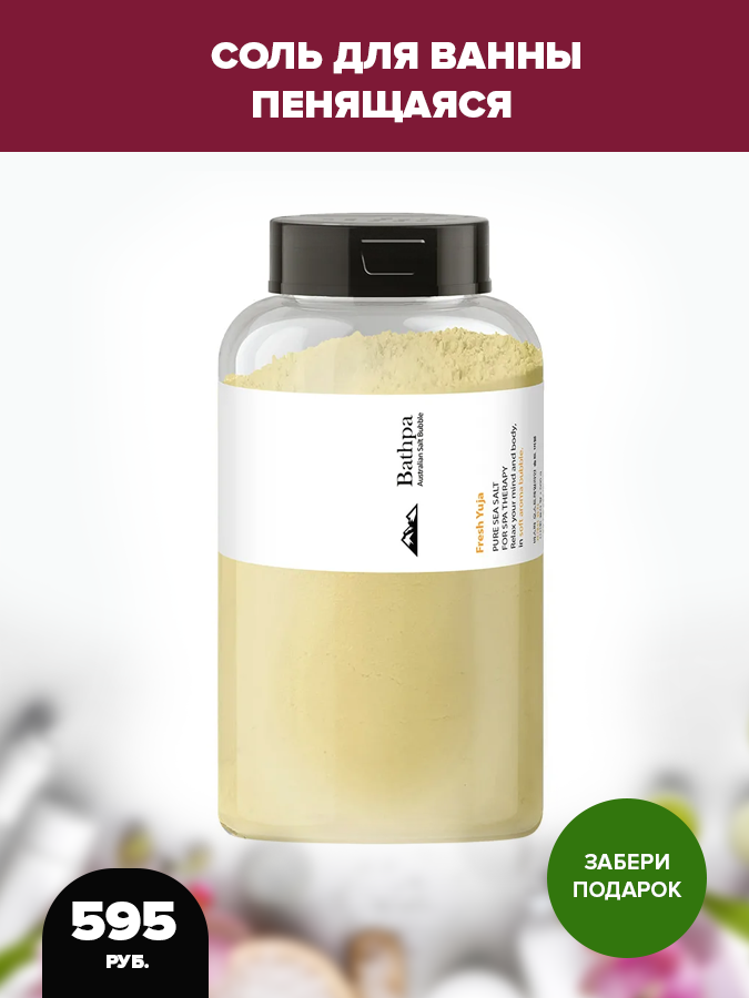 Образует мягкую пену, которая бережно очищает и удаляет верхний ороговевший слой кожи. Австралийская морская соль, наполненная смесью ароматических масел и гиалуроновой кислоты, помогает снять физическую усталость и напряжение, оставляет кожу мягкой, гладкой и увлажненной.