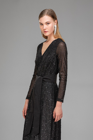 ВЕЧЕРНЕЕ ПЛАТЬЕ ИЗ ГИПЮРА С ПАЙЕТКАМИ