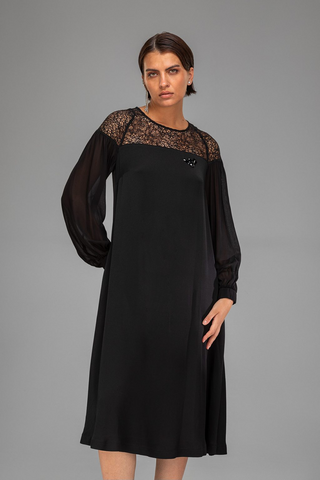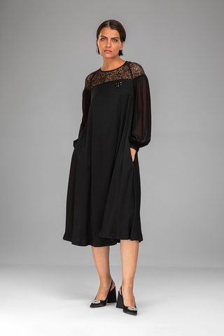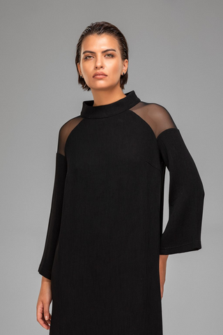 ПЛАТЬЕ С ШИРОКИМИ РУКАВАМИ И ПРОЗРАЧНЫМИ ВСТАВКАМИ