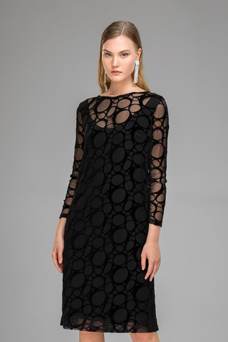 РАСКЛЕШЕННОЕ ПЛАТЬЕ С ДЕКОРОМ ИЗ СЕТКИ