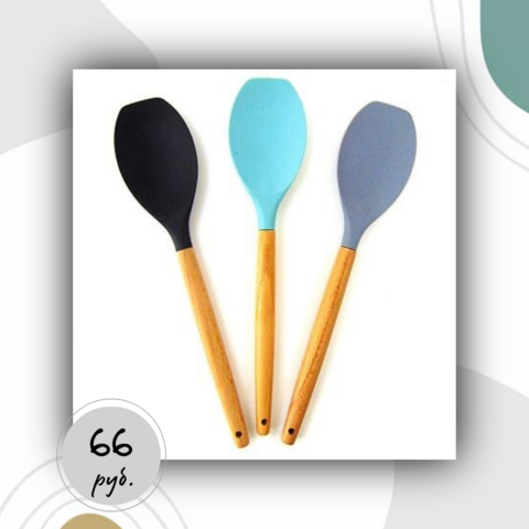 Лопатка силиконовая с деревянной ручкой 32 см.1 шт.