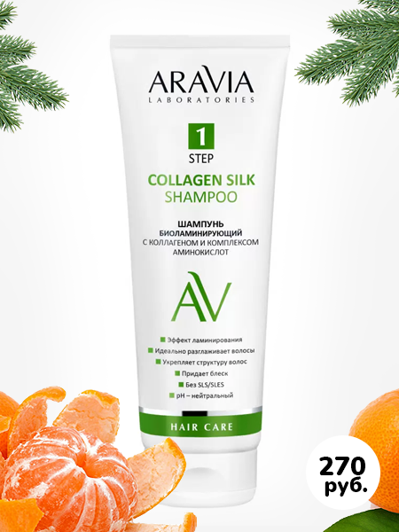 Очищает кожу головы и создает эффект ламинирования. Коллаген в составе идеально разглаживает волосы, придает им шелковистость и здоровый блеск, глубоко увлажняет